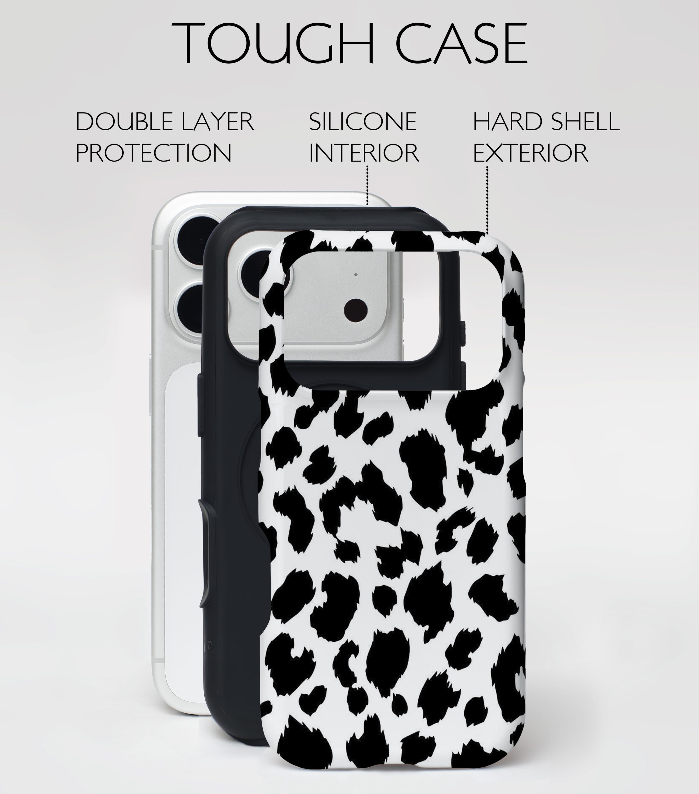 Striking, fearless, and undeniably chic — Bold Cowhide Noir brings a high-contrast black-and-white pattern that turns heads instantly. Inspired by modern Western fashion with a luxury edge, this case is for those who like their style bold, confident, and unapologetic. Statement energy only. 🖤🐄🔥