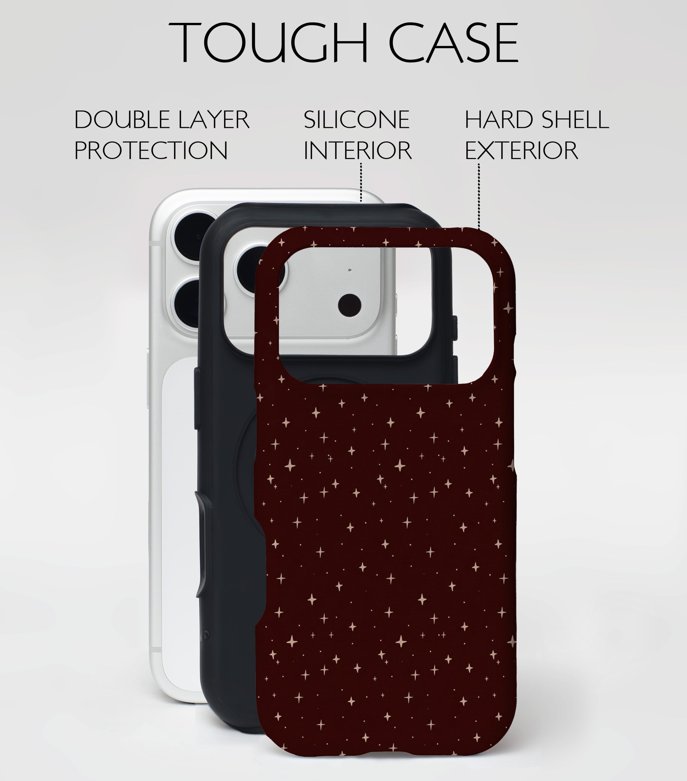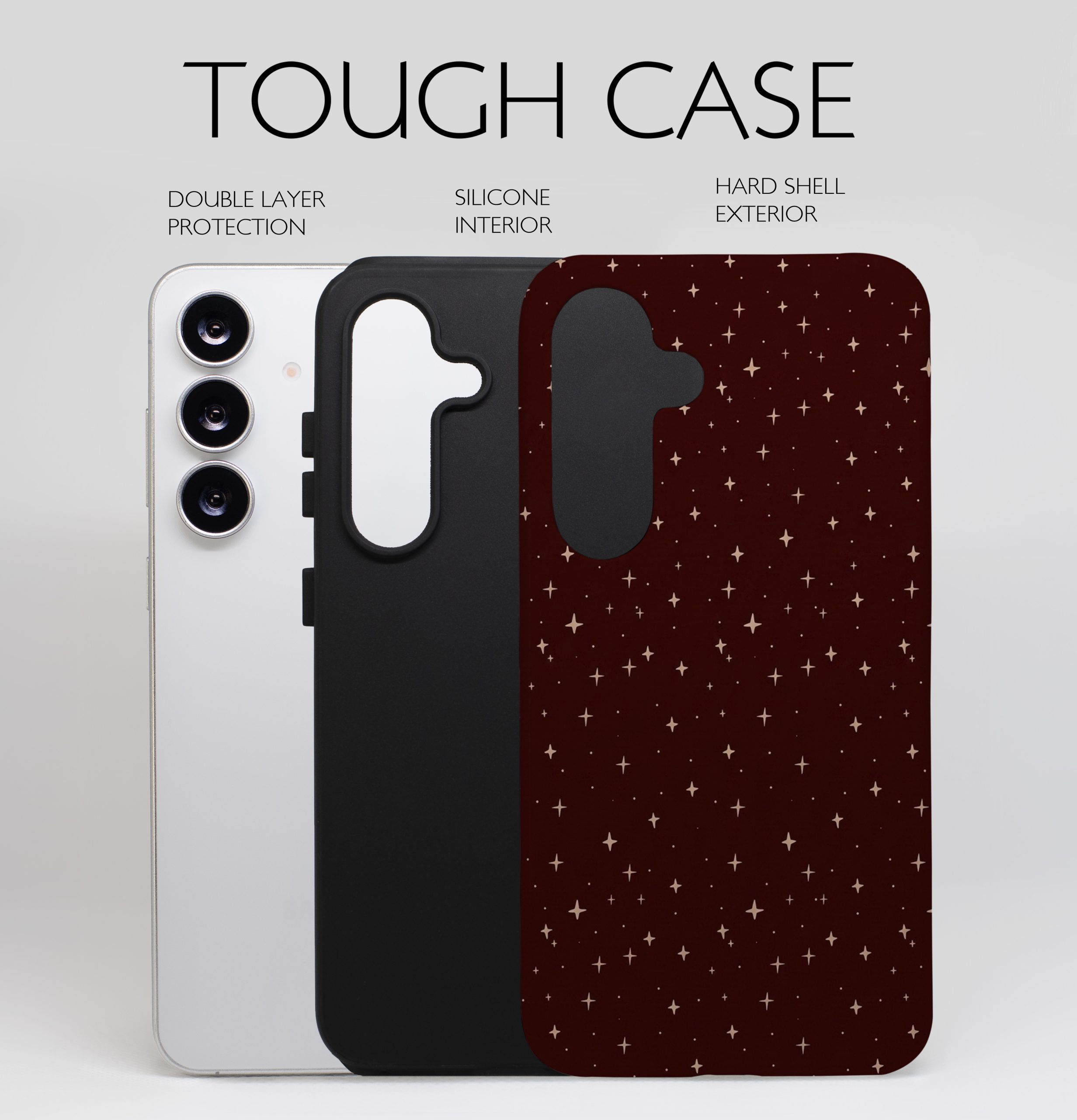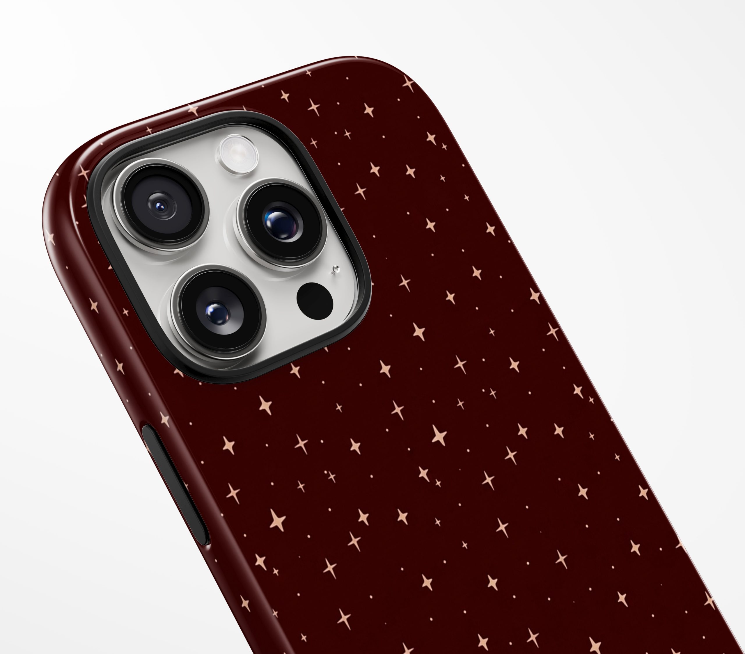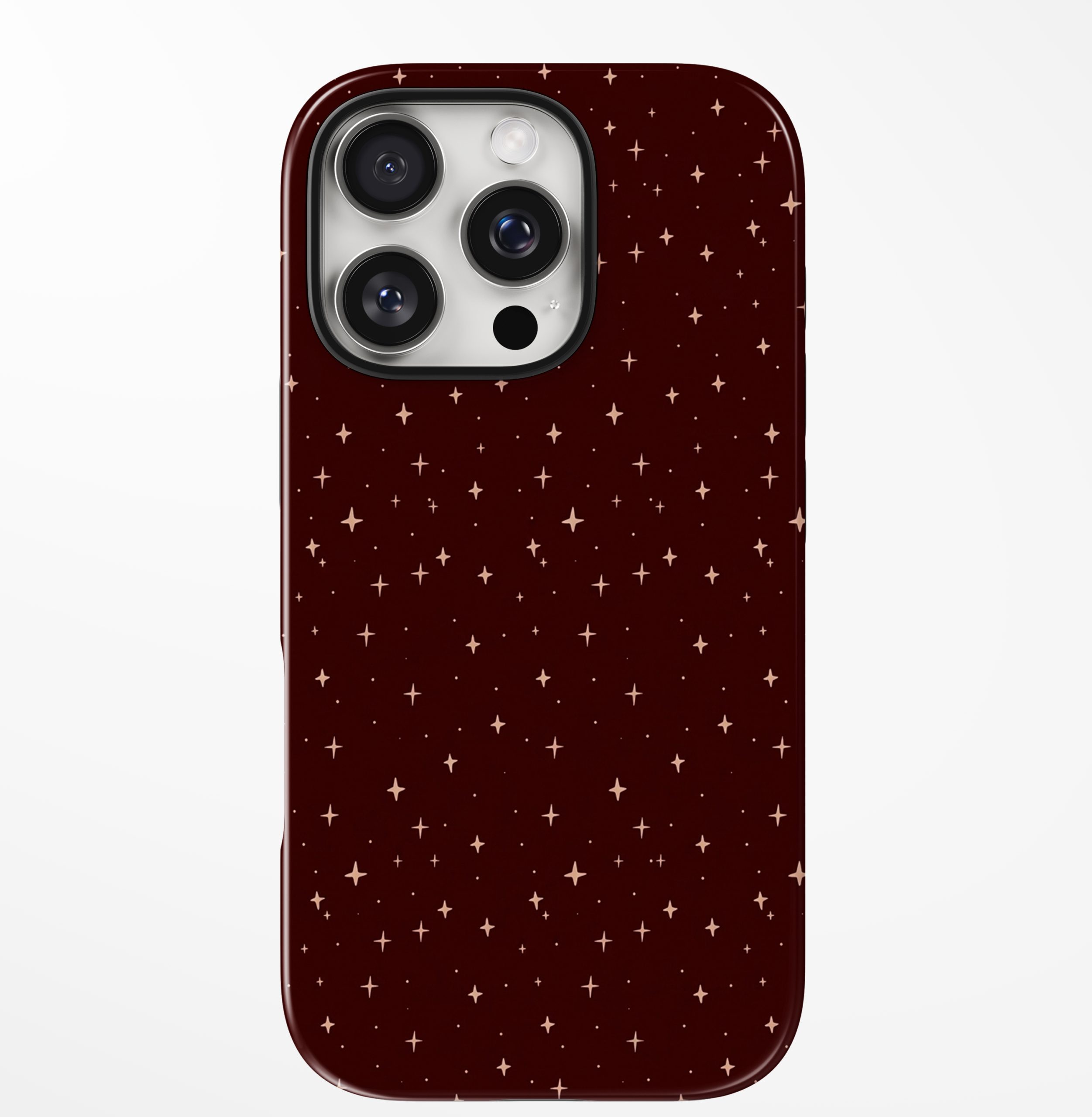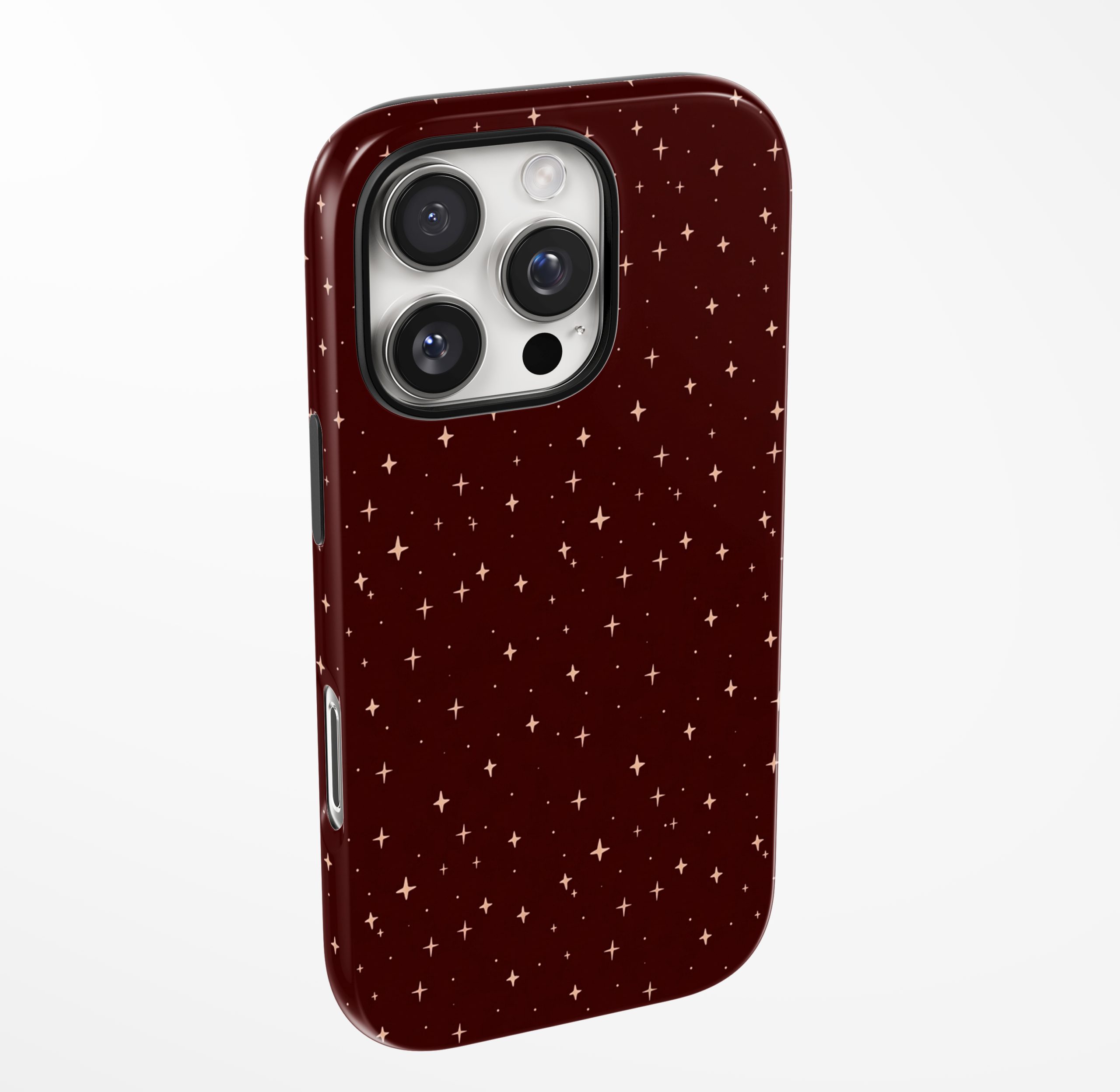 Tiny golden stars scattered across deep crimson — simple, classy, and endlessly captivating.