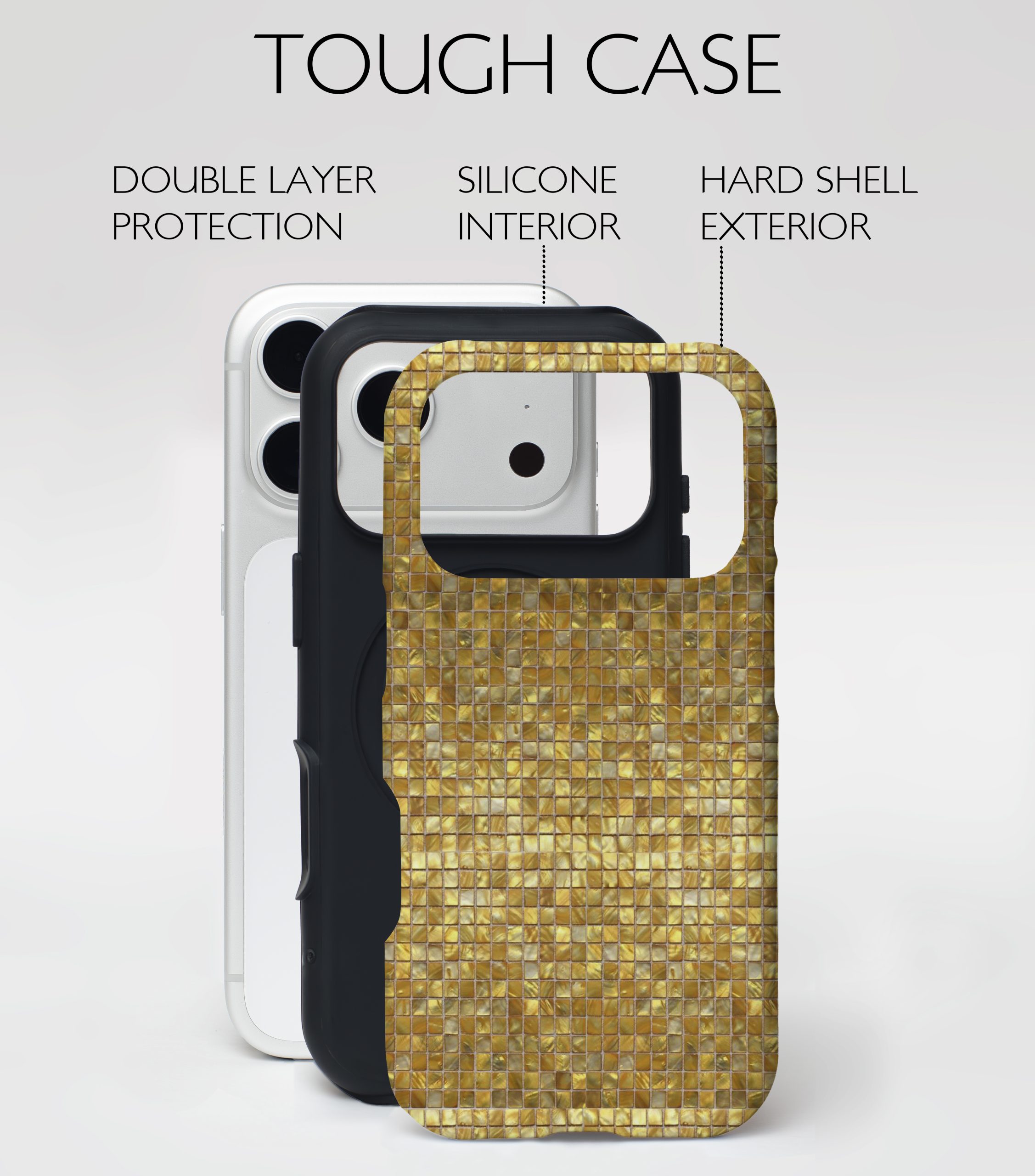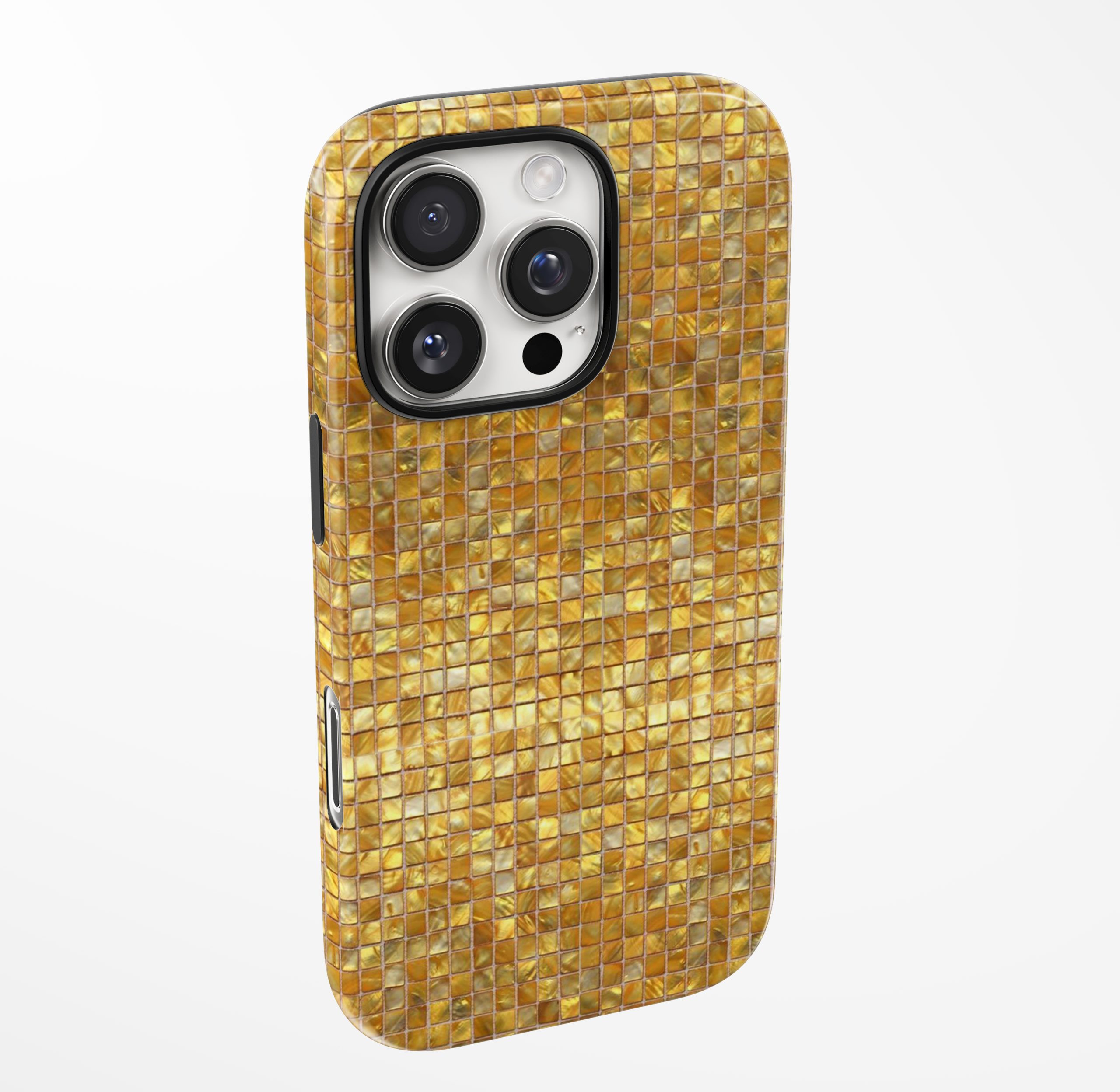 Turn up the warmth with this radiant golden mosaic design. Light dances across every tile, creating a glowing honey-gold finish that instantly elevates your phone. If you’re all about bold colors and rich textures, this one’s made for you.