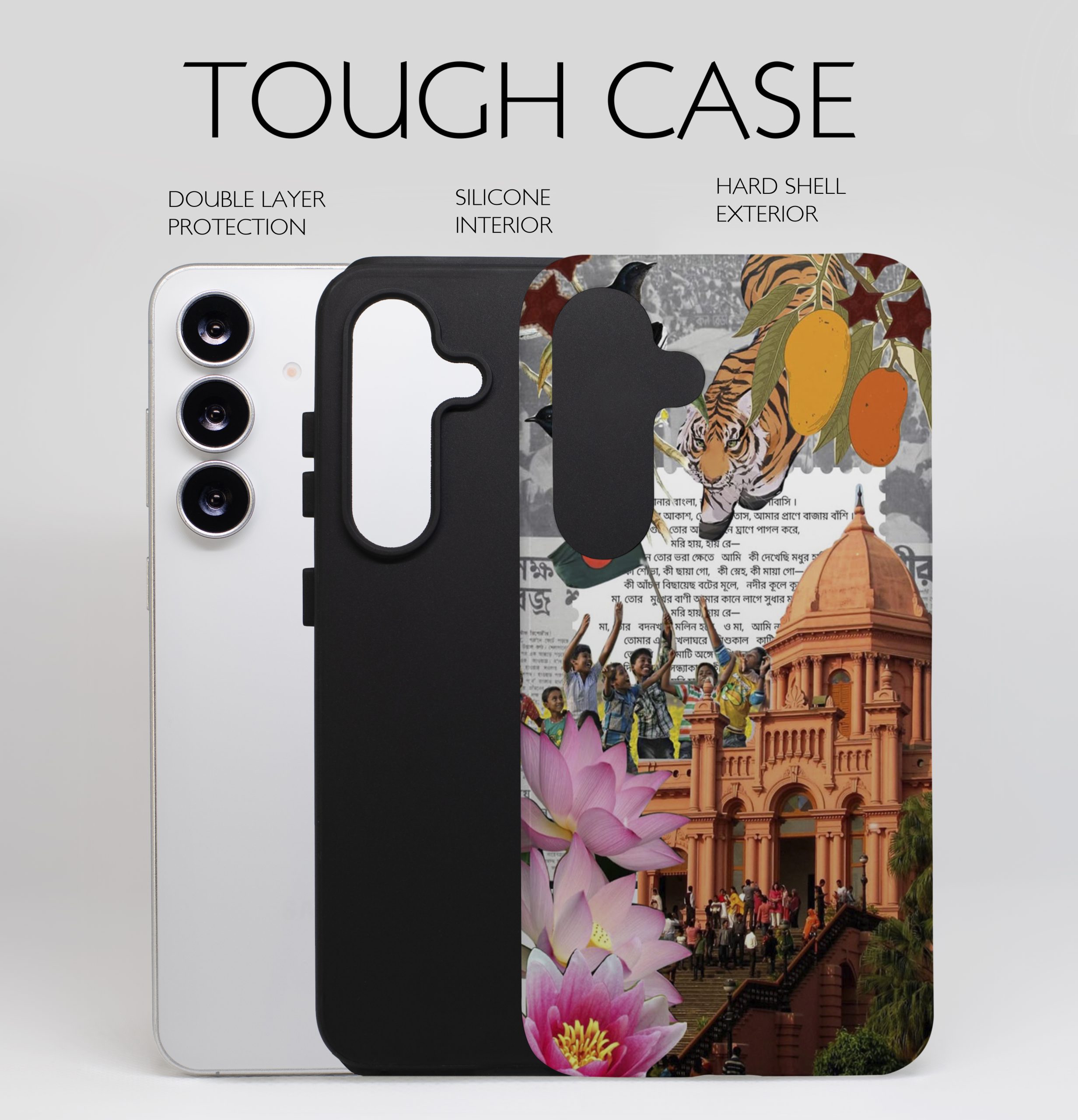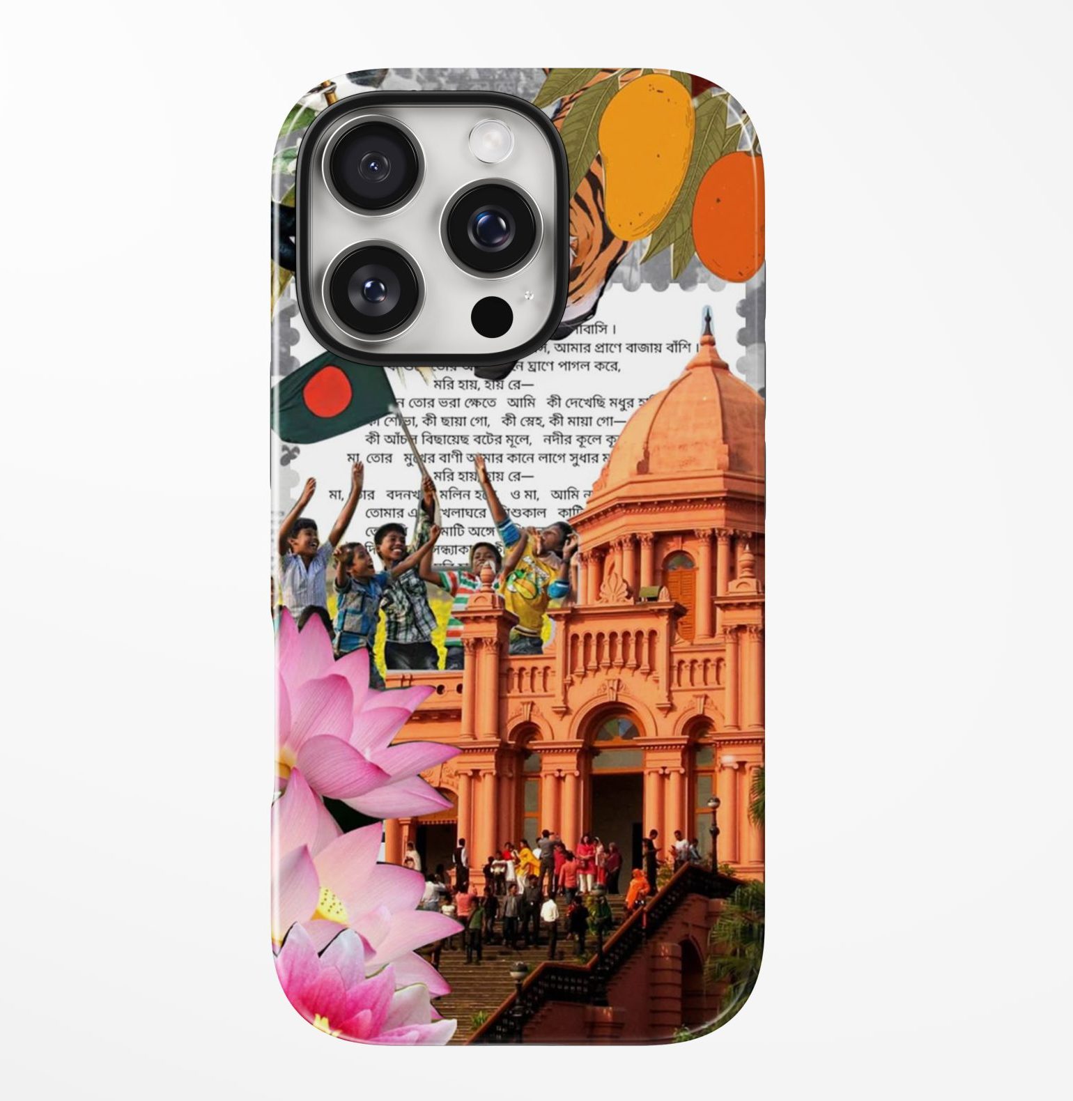 Carry a piece of home wherever you go. Heritage Bloom blends Dhaka’s iconic Ahsan Manzil with the soft beauty of lotus flowers and the joyful spirit of Bangladeshi culture. A collage of childhood memories, national pride, and everyday magic — all wrapped around your phone.