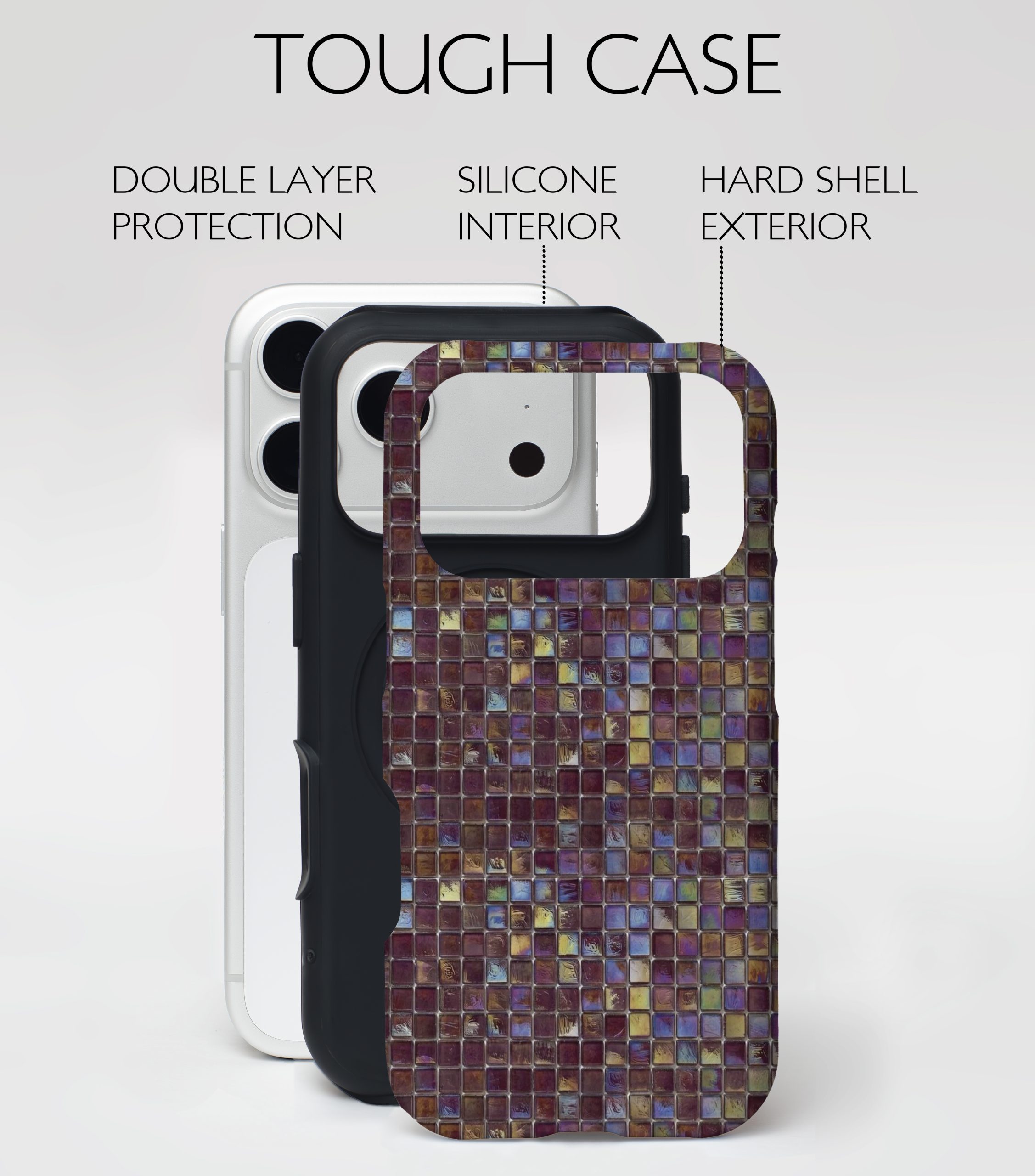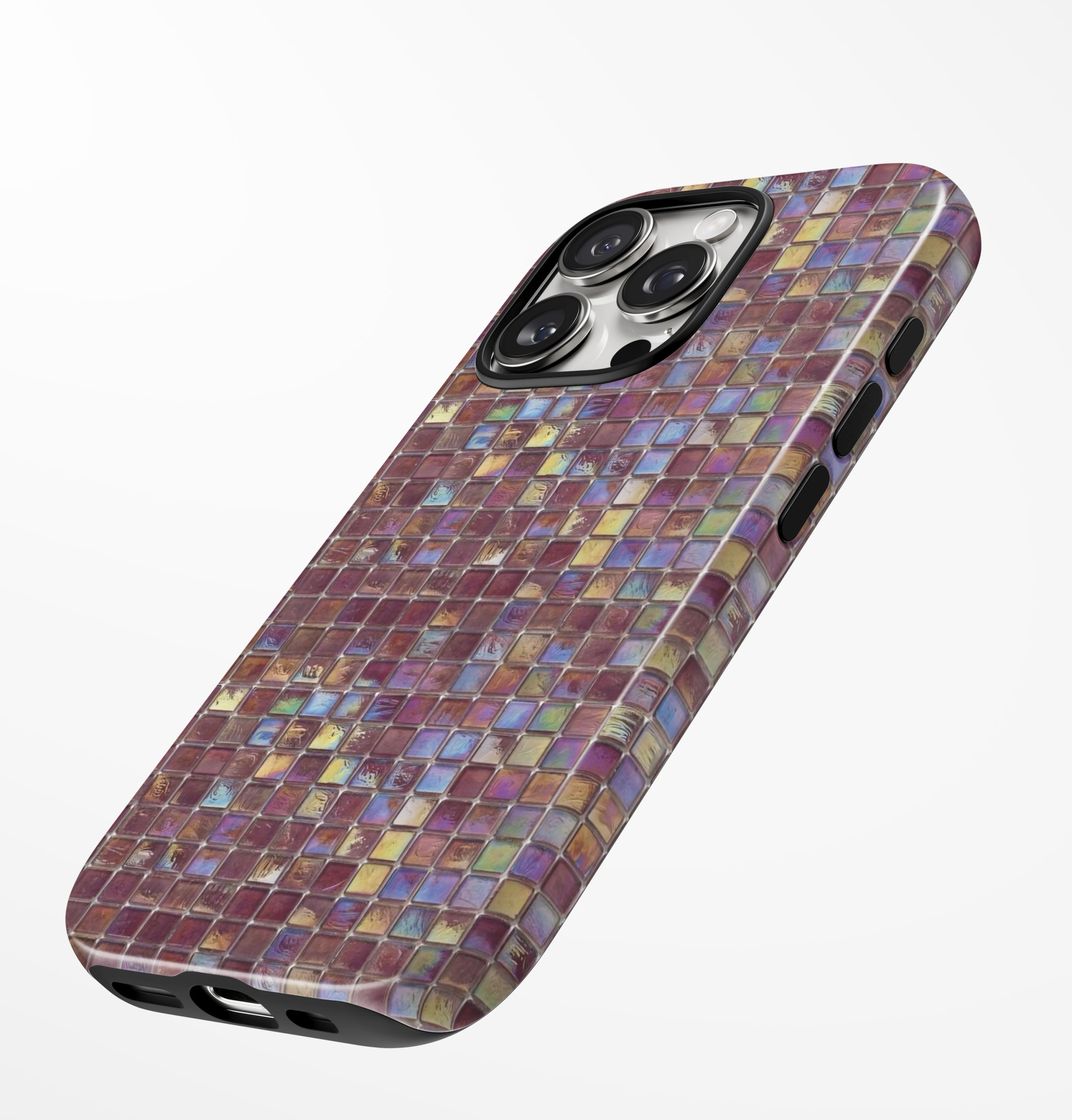 Turn your phone into a statement piece with this rich ruby-toned mosaic design. Every tiny tile shimmers with mesmerizing iridescence, giving your device a luxurious, jewel-like finish. It’s bold, artistic, and made for those who prefer their accessories with a touch of opulence. Your phone has never looked this glamorous.