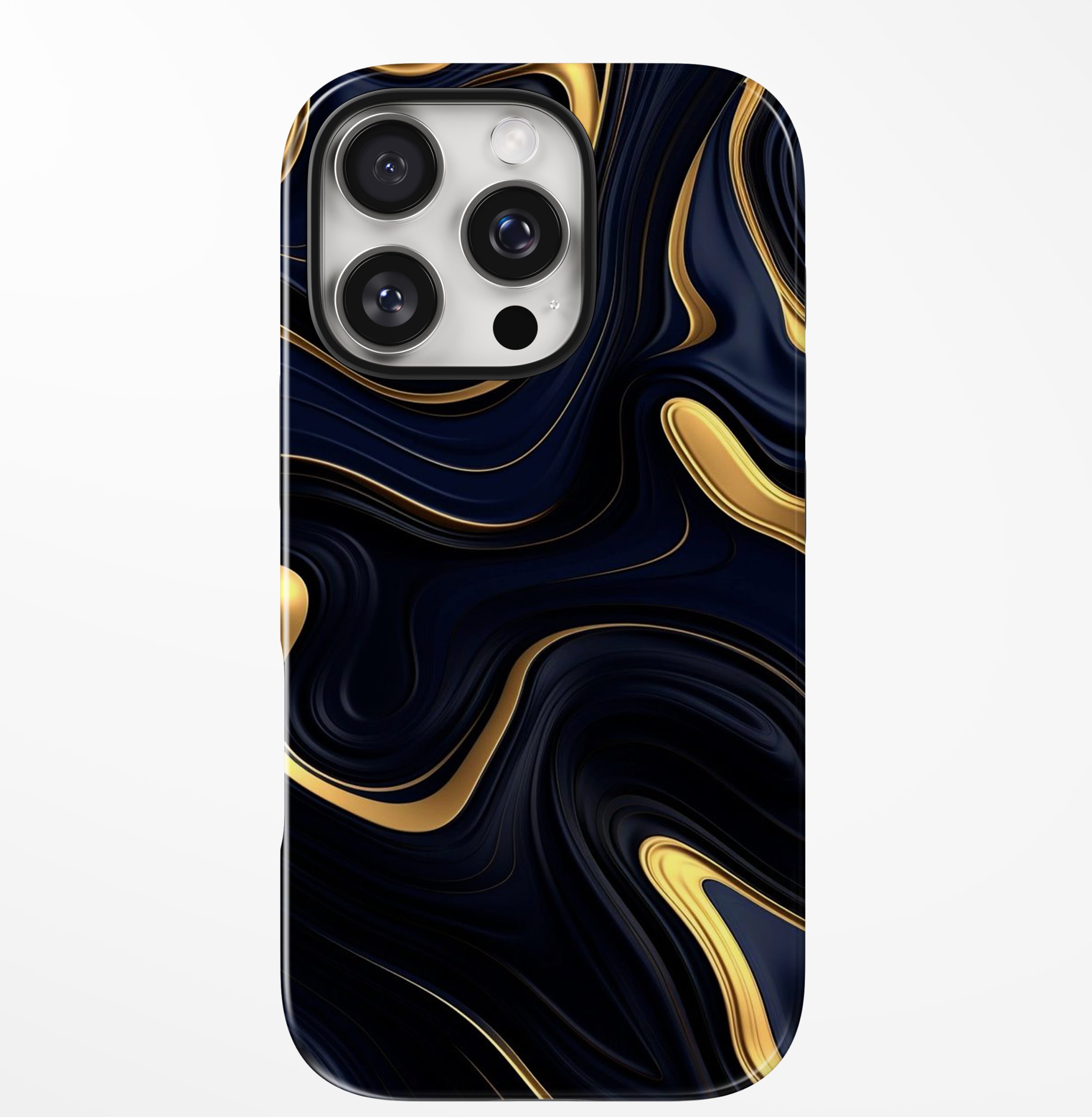 Dramatic swirls of inky black meet molten gold in this ultra-luxurious design — made for anyone who lives boldly and shines effortlessly. Midnight Gold Flow transforms your phone into a statement accessory, blending high-fashion glamour with everyday durability. Because your phone deserves to sparkle just as much as you do.