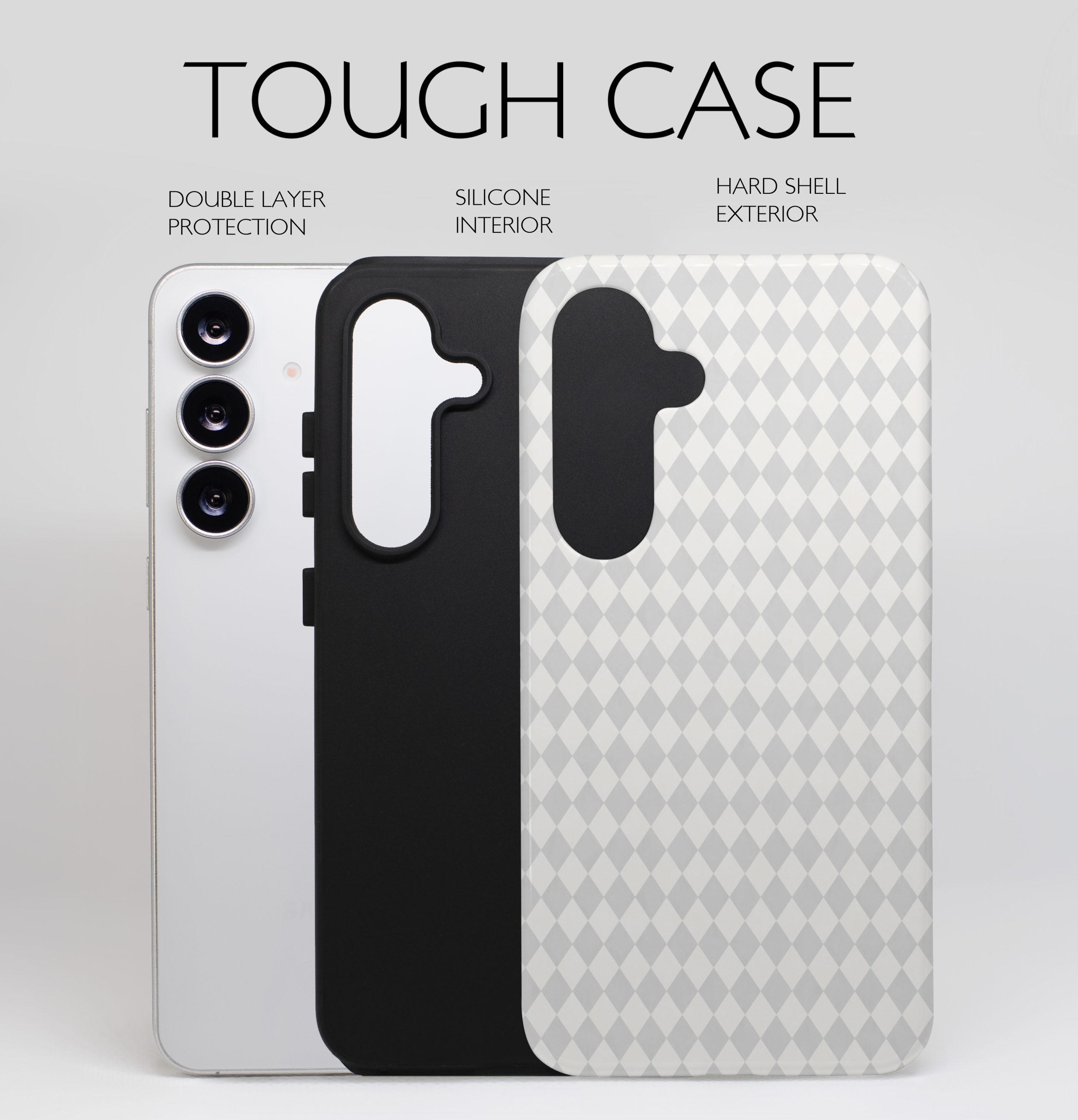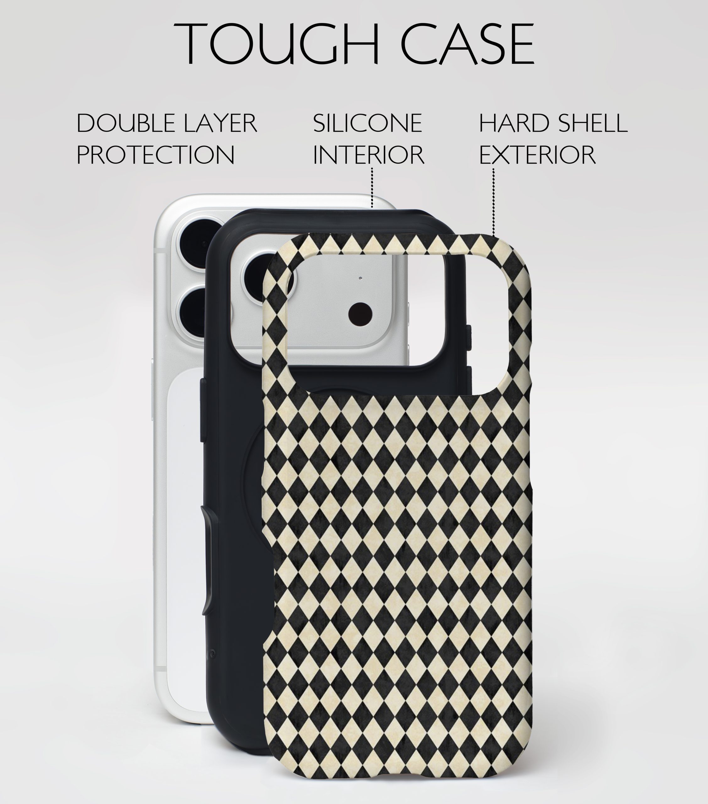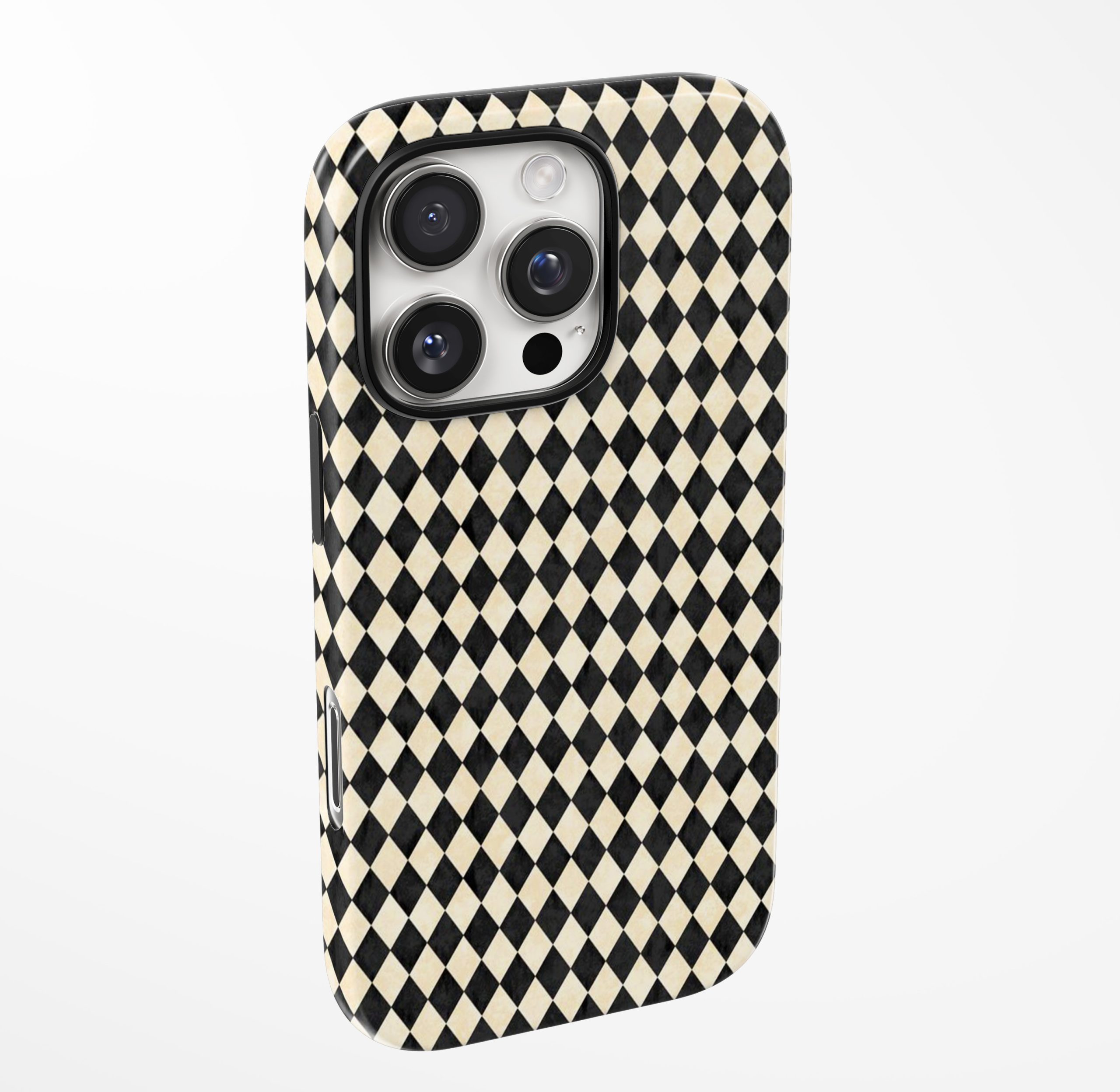 Bold yet timeless — Monochrome Harlequin Luxe brings classic black-and-cream geometry into a modern luxury statement. Clean lines, artistic symmetry, and a fashion-forward edge make this case effortlessly chic.