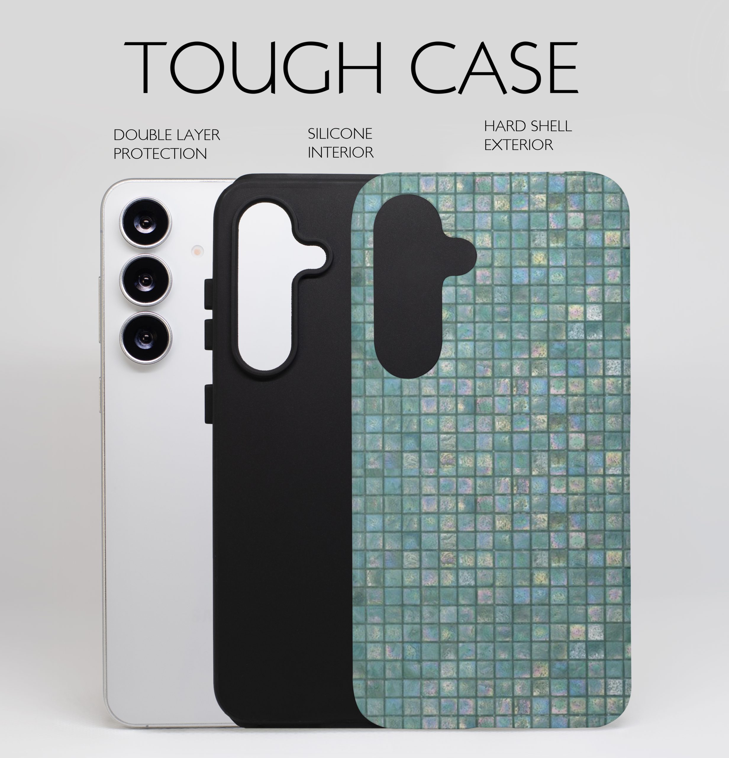 Fresh, cool, and impossible to ignore—this mint-blue mosaic case brings ocean vibes straight to your hands. Each shimmering square captures soft pastel reflections that shift beautifully in the light. Perfect for anyone who wants their phone to feel like a serene escape with every glance.