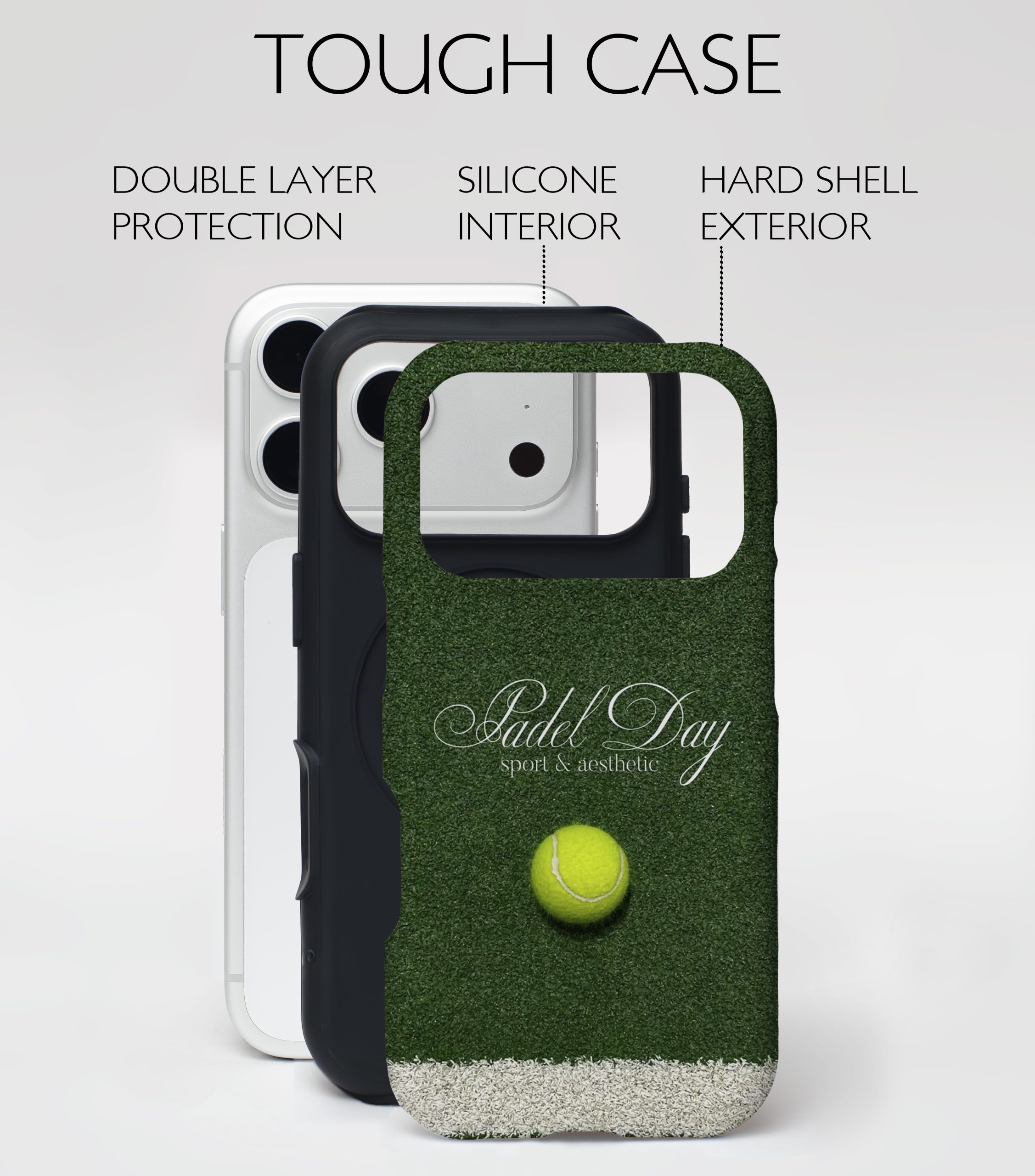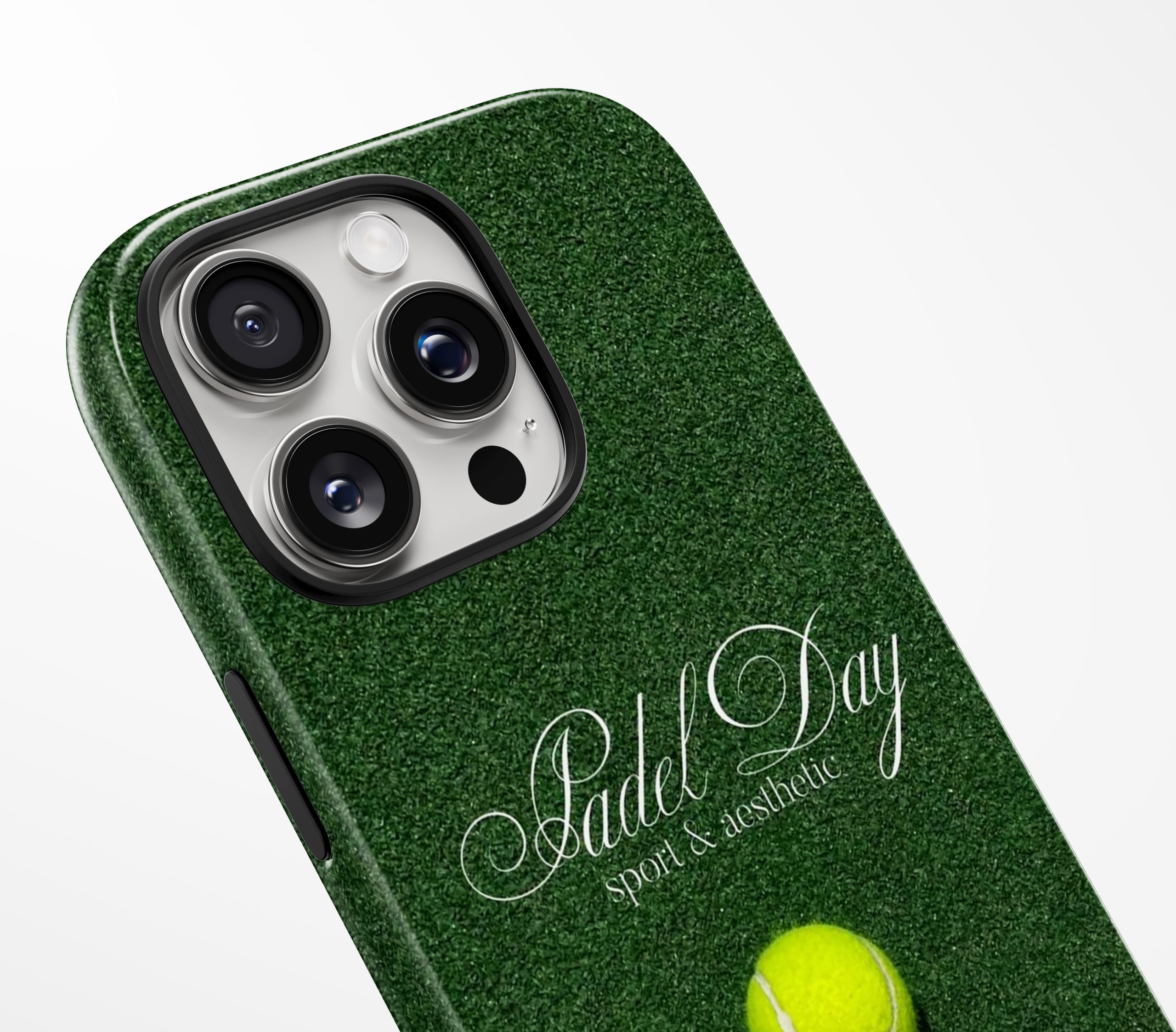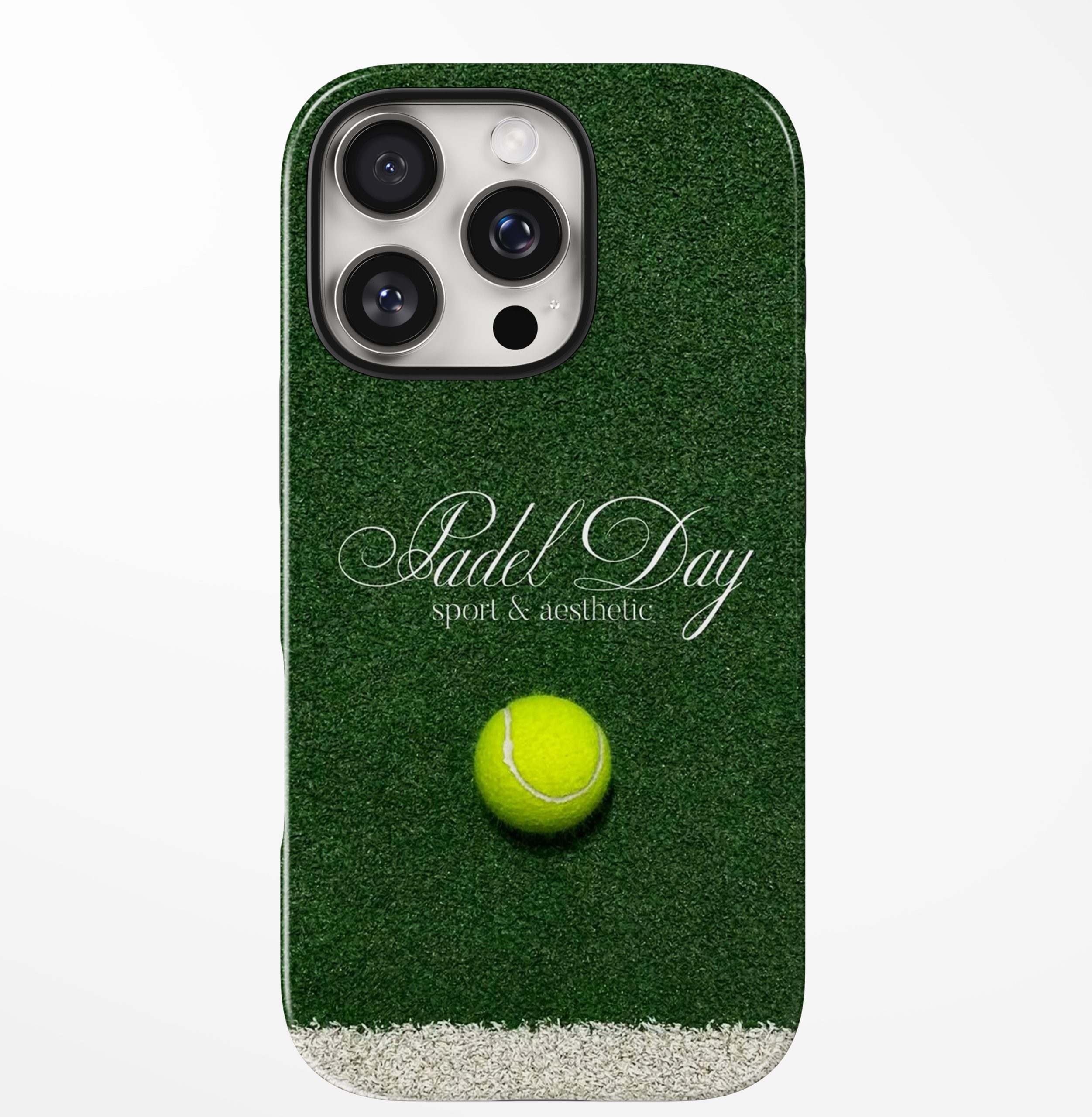 Sport meets style in Padel Day — a bold design inspired by green courts and active lifestyles. The rich grass texture paired with a tennis ball centerpiece gives this case a dynamic, athletic edge while keeping things sleek and modern.