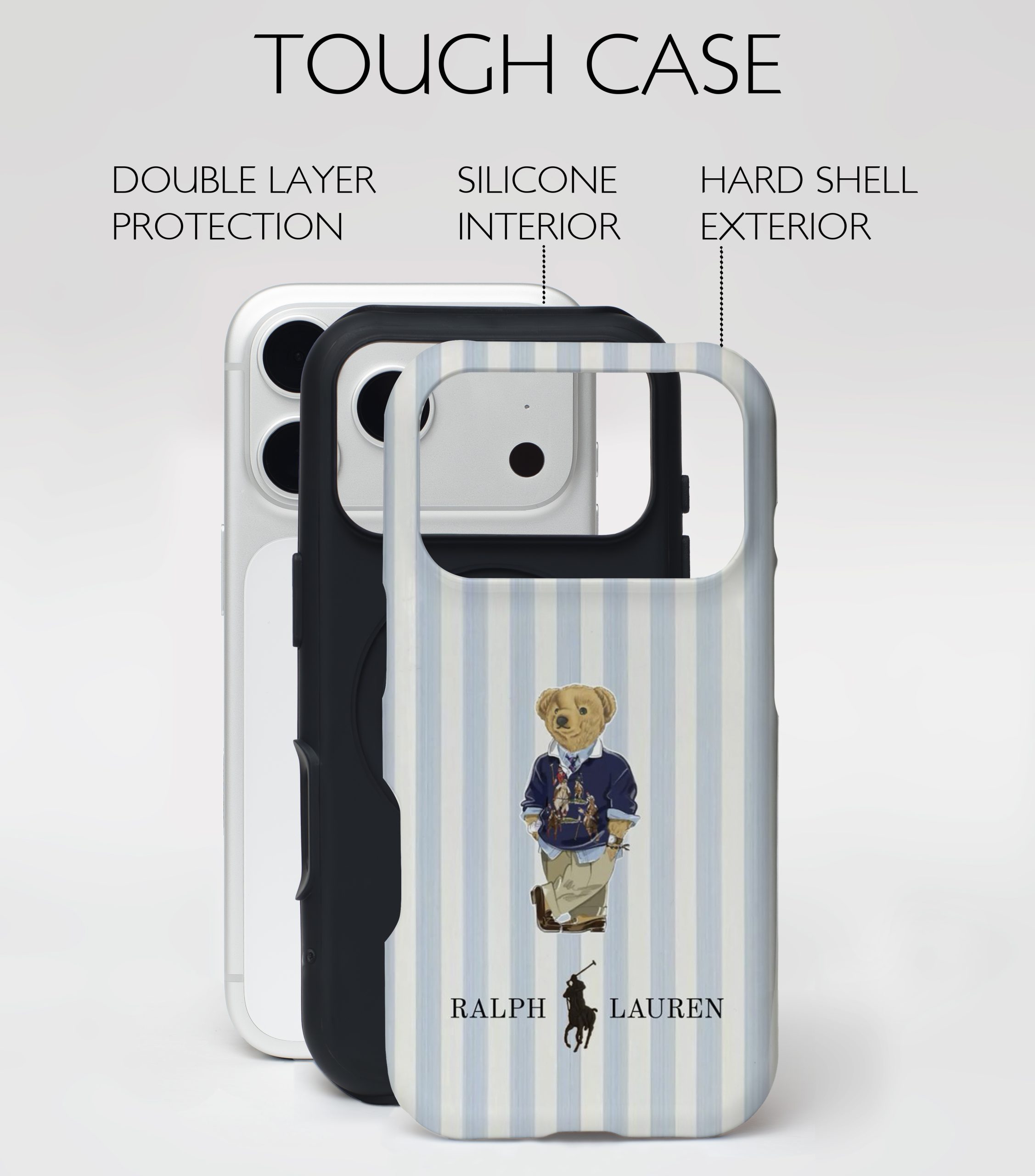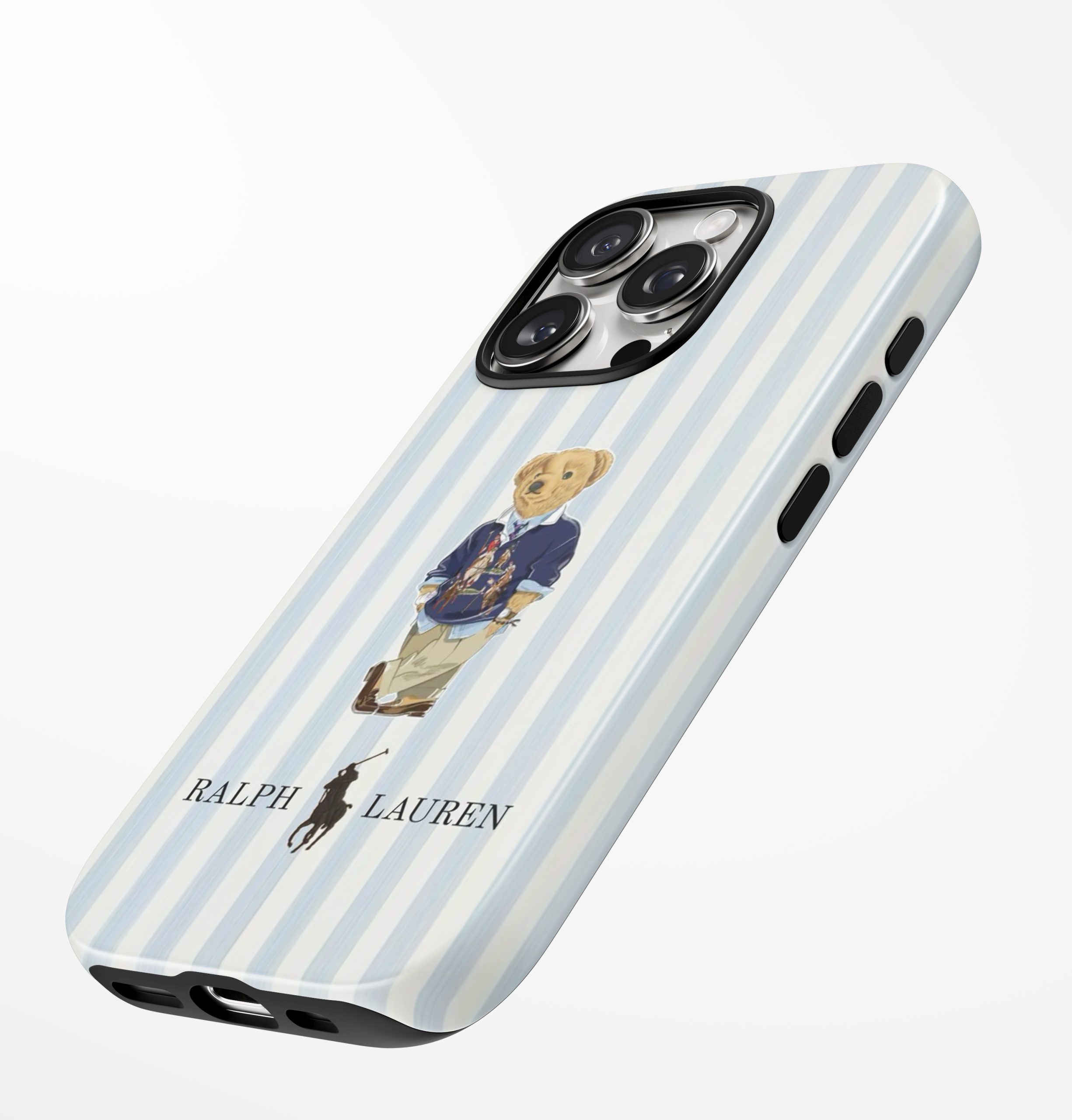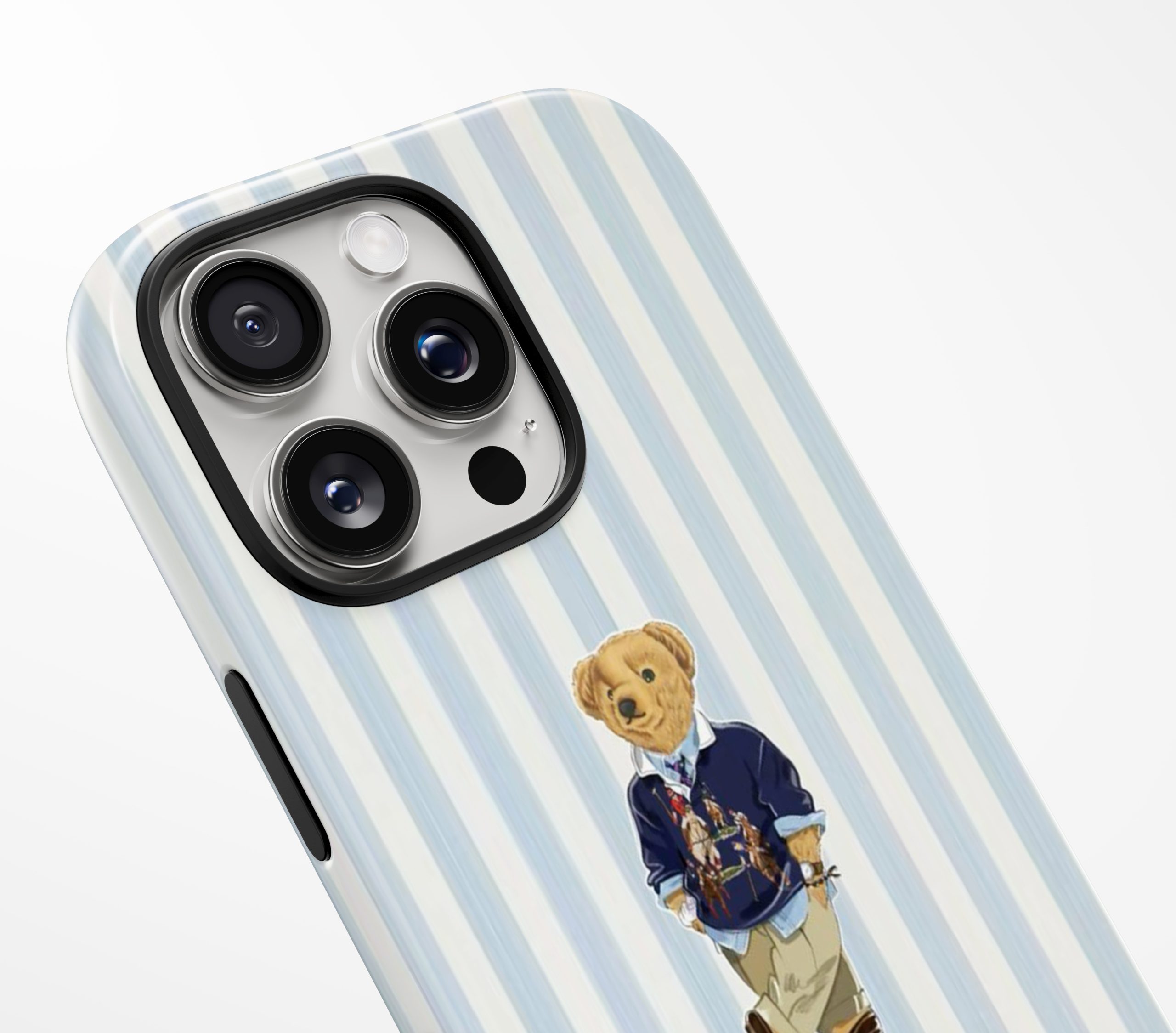 Cute meets classic in Preppy Bear Club — a timeless striped background paired with a charming preppy bear illustration. Inspired by Ivy League fashion and cozy nostalgia, this design brings playful elegance to your phone.