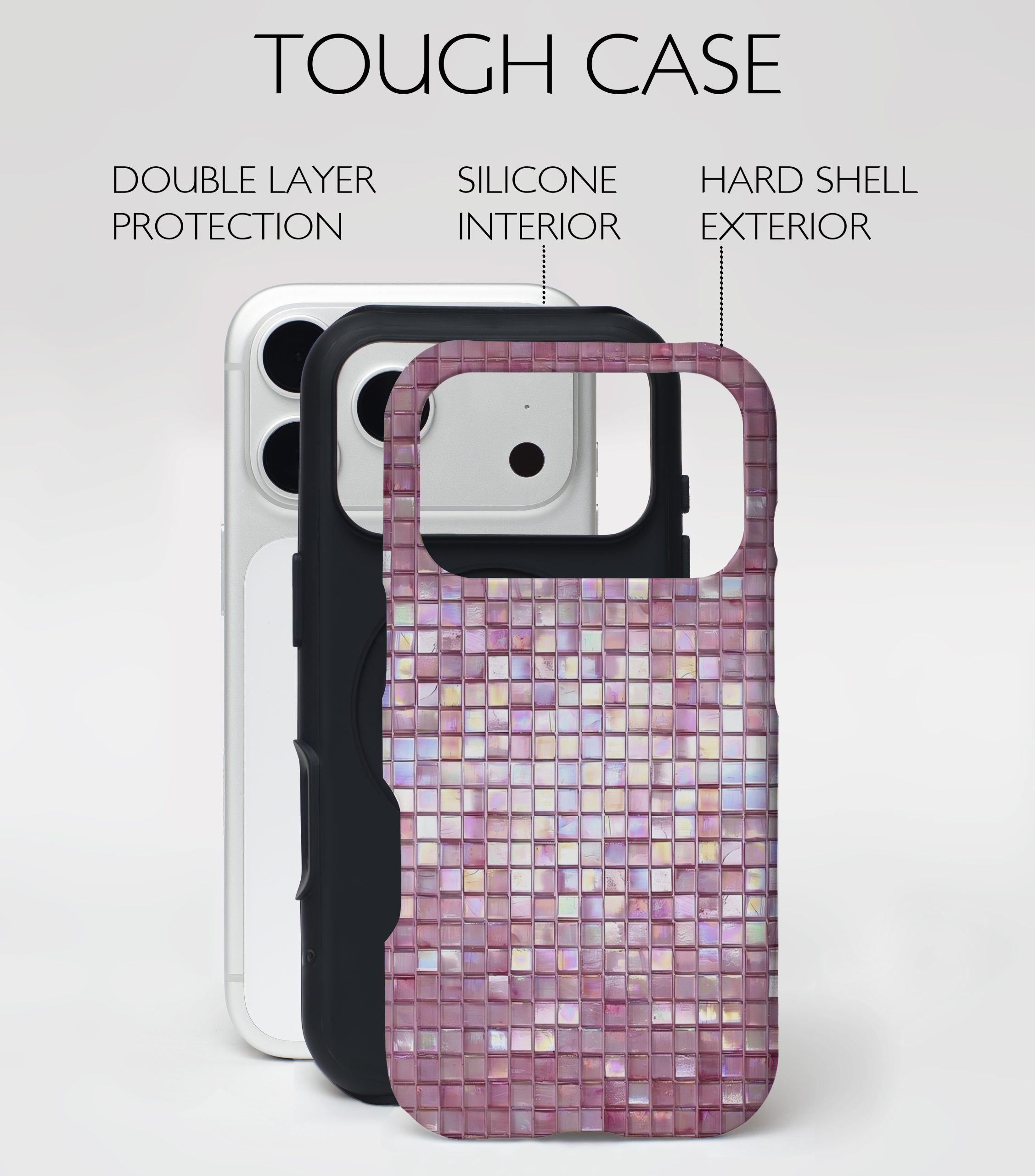 Meet your new favorite pink aesthetic. This case combines glossy rose mosaic tiles with pearlescent highlights that glow softly from every angle. It’s feminine, dreamy, and effortlessly chic—exactly what you need when your phone deserves to shine as much as you do.