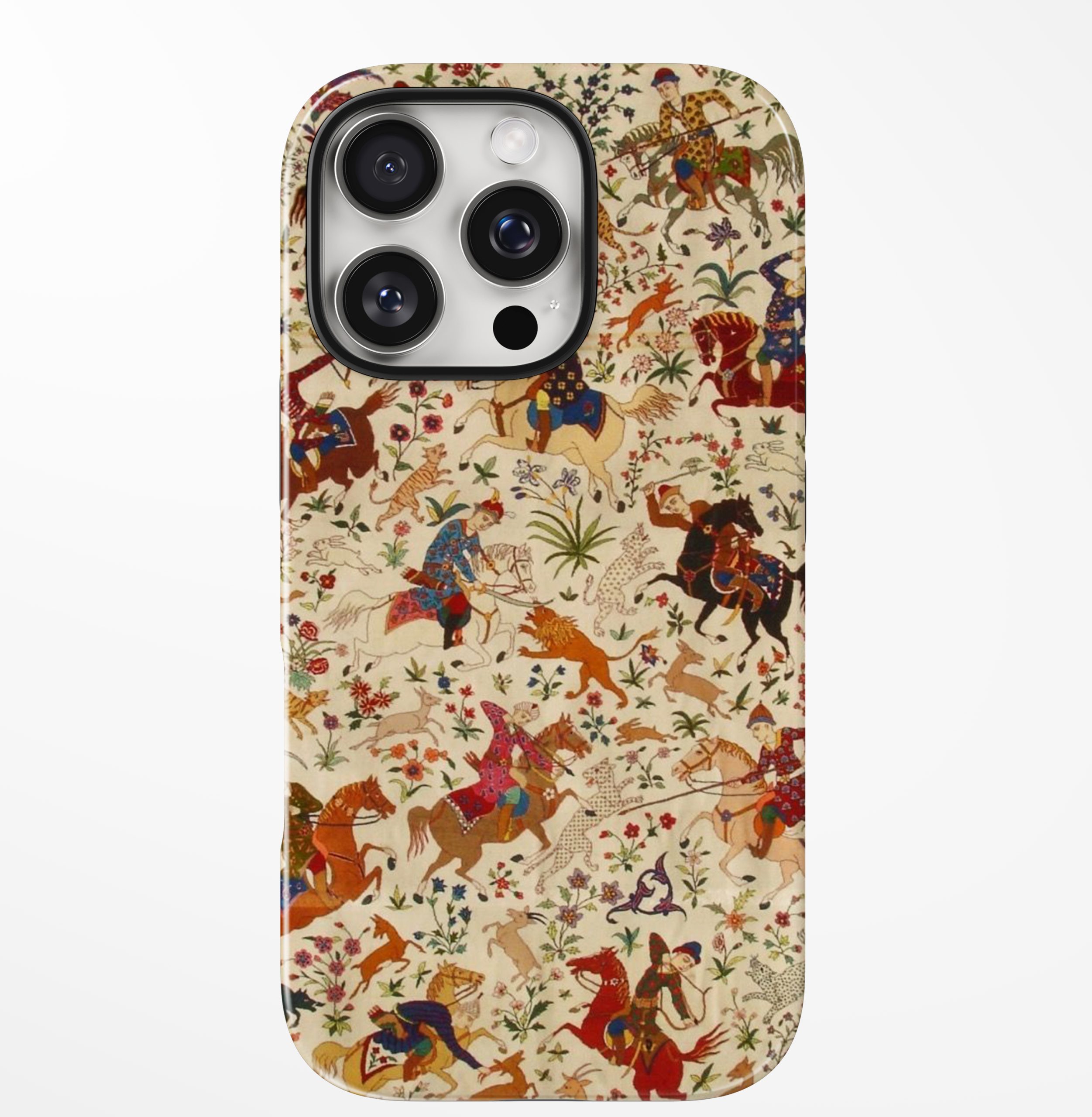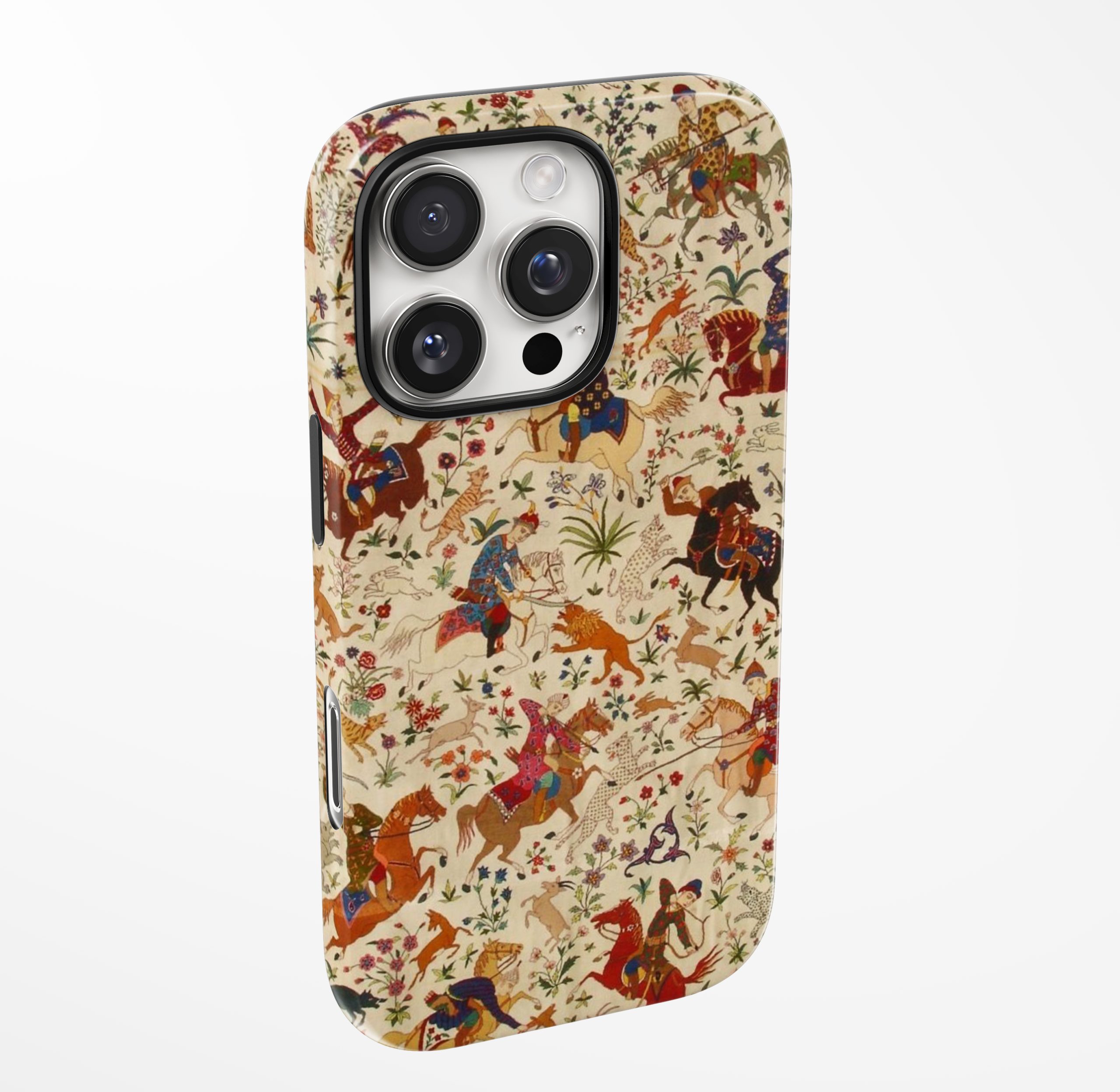 Rich colors and intricate figures create a regal, artistic statement. Bold yet graceful, this case feels like wearable art with a touch of royalty.