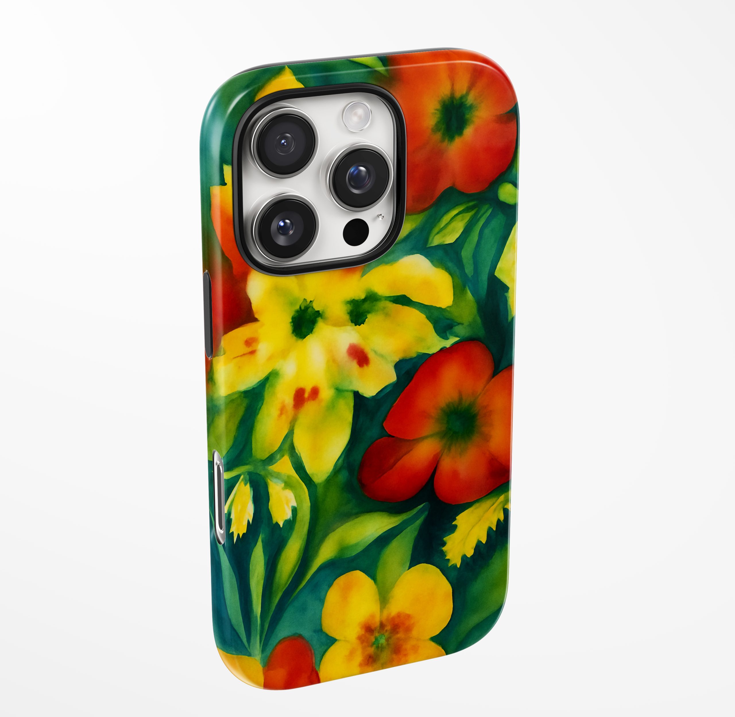 Step into a watercolor daydream. Sunny Bloom Garden wraps your phone in a vivid burst of hand-painted florals—glowing yellows, fiery reds, and lush greens that radiate pure joy. Whether you’re a nature lover or simply obsessed with bold color, this design brings a lively, artistic warmth to every moment.